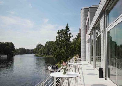 Eine Ruheinsel mitten in der Großstadt – die BRIDGE Studios Berlin bieten einen fantastischen Rahmen für Tagungen, Kongresse und Workshops. In nur 10 Autominuten vom Hauptbahnhof sowie vom Messegelände ICC erreichbar, bieten 2 große Kongressräume und bis zu 4 Break-Out Räume genügend Platz für Zusammenkünfte jeglicher Art. Direkt am Wasser gelegen, können Sie ihre Gäste auch mit dem Boot zur Location bringen. Zudem bietet unser 3.500 m² großes Parkareal ein perfektes Ambiente zum Entspannen.